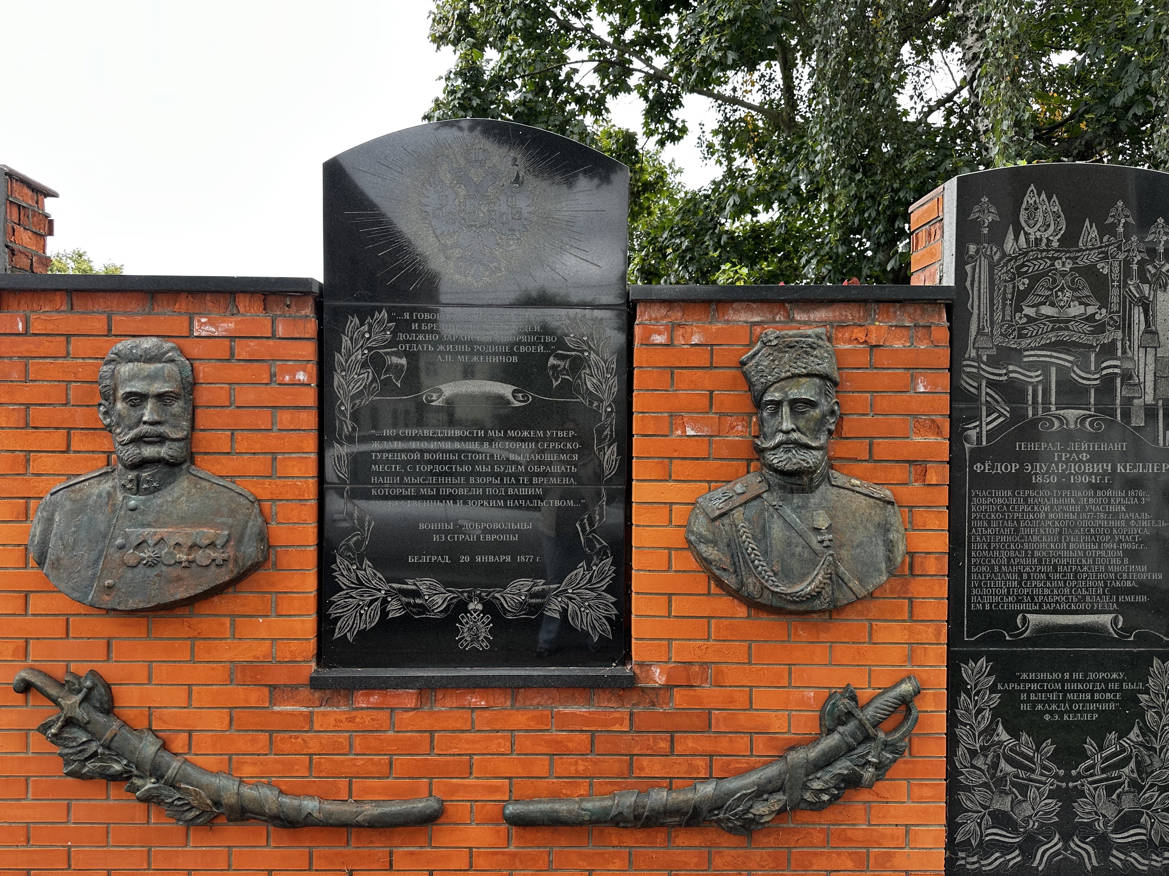 Мемориал добровольцам сербско-турецкой войны 1876 года генералу сербской службы и полковнику русской армии Александру Павловичу Меженинову и генералу русской армии графу Федору Эдуардовичу Келлеру был открыт в 2003 году в городе Зарайске Московской области на территории Зарайского военкомата.